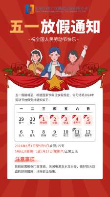 根據(jù)國家法定節(jié)假日安排及公司實(shí)際情況,現(xiàn)將2023年五一勞動節(jié)放假事宜通知如下:一、放假時間本次放假時間為2023年4月29日(星期六)至5月3日(星期三)放假調(diào)休,共5天。4月23日(星期日)、5月6日(星期六)上班。請各位員工提前做好工作安排,確保放假期間各項(xiàng)工作能夠順利交接。